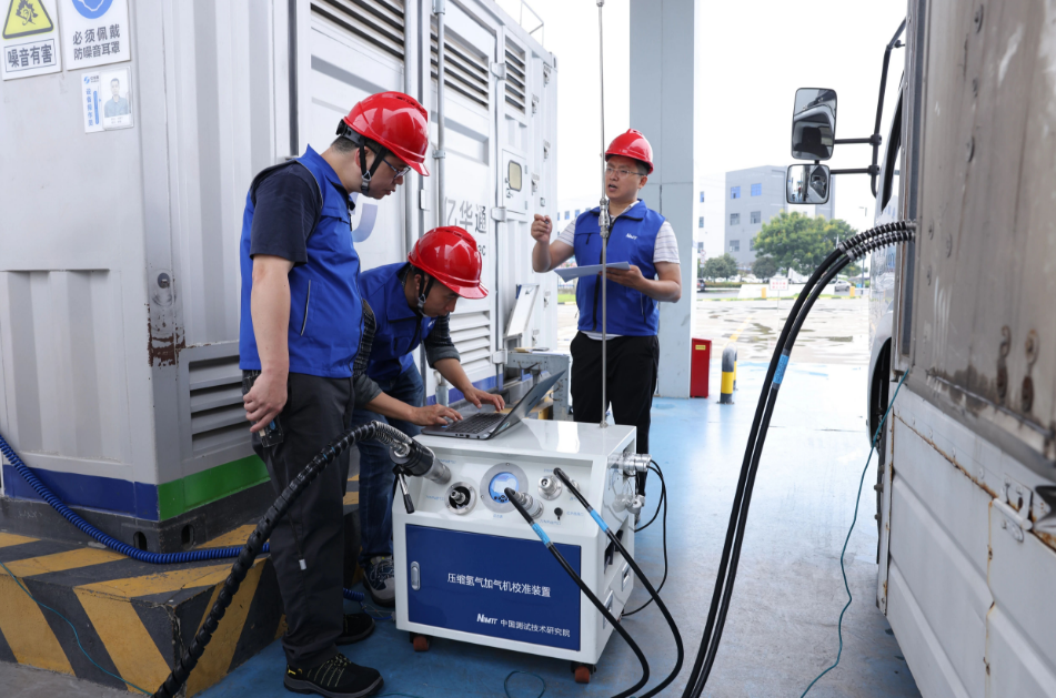 多年来,中国测试技术研究院积极开展绿氢产业关键计量测试技术研究,是国内唯一一家同时具备加氢机及加氢机校准装置CNAS校准能力的单位,持续为全国各地加氢站及加氢机生产企业提供加氢机、卸氢柱、加氢柱的校准服务,氢气用流量计的校准或测试服务, 以及加氢机校准装置的校准服务,为成都大运会后勤保障专用氢能巴士车和餐食冷藏物流车的氢气燃料加注提供现场计量检测服务。